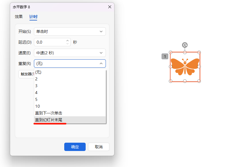 在PowerPoint和WPS演示让蝴蝶一直跳8字舞