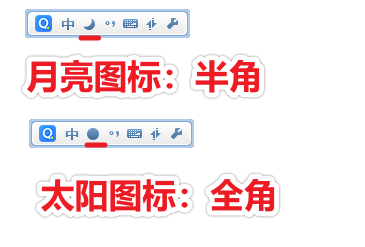以QQ拼音输入法为例,全角半角的模式如下: