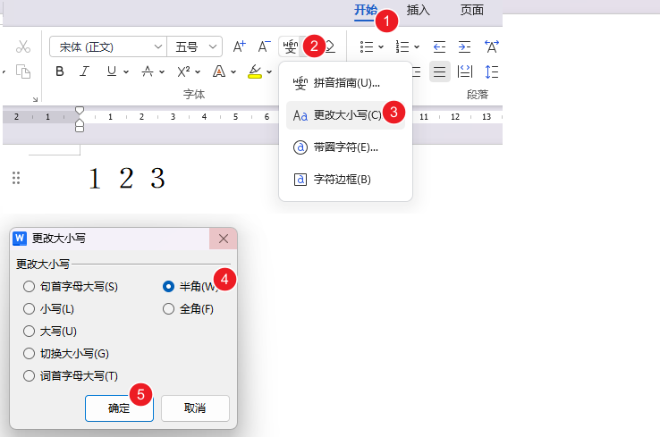 在Word和WPS文字中把全角数字全部改为半角