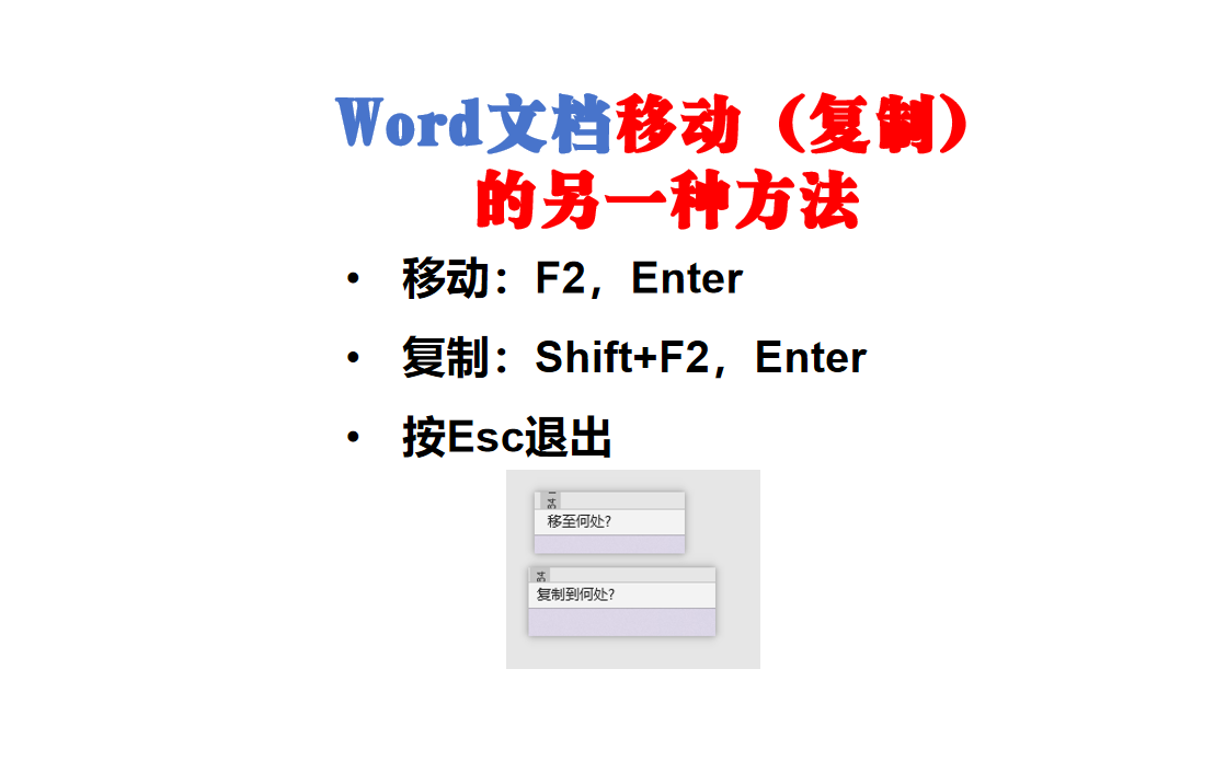 如何快速在Word文档中剪切或复制内容到本文档的其他位置?不用剪切或复制,再粘贴,只需要先选中内容,然后按下F2(Shift+F2)剪切(复制)内容,再把光标放到目标位置按下回车键就搞定了。
