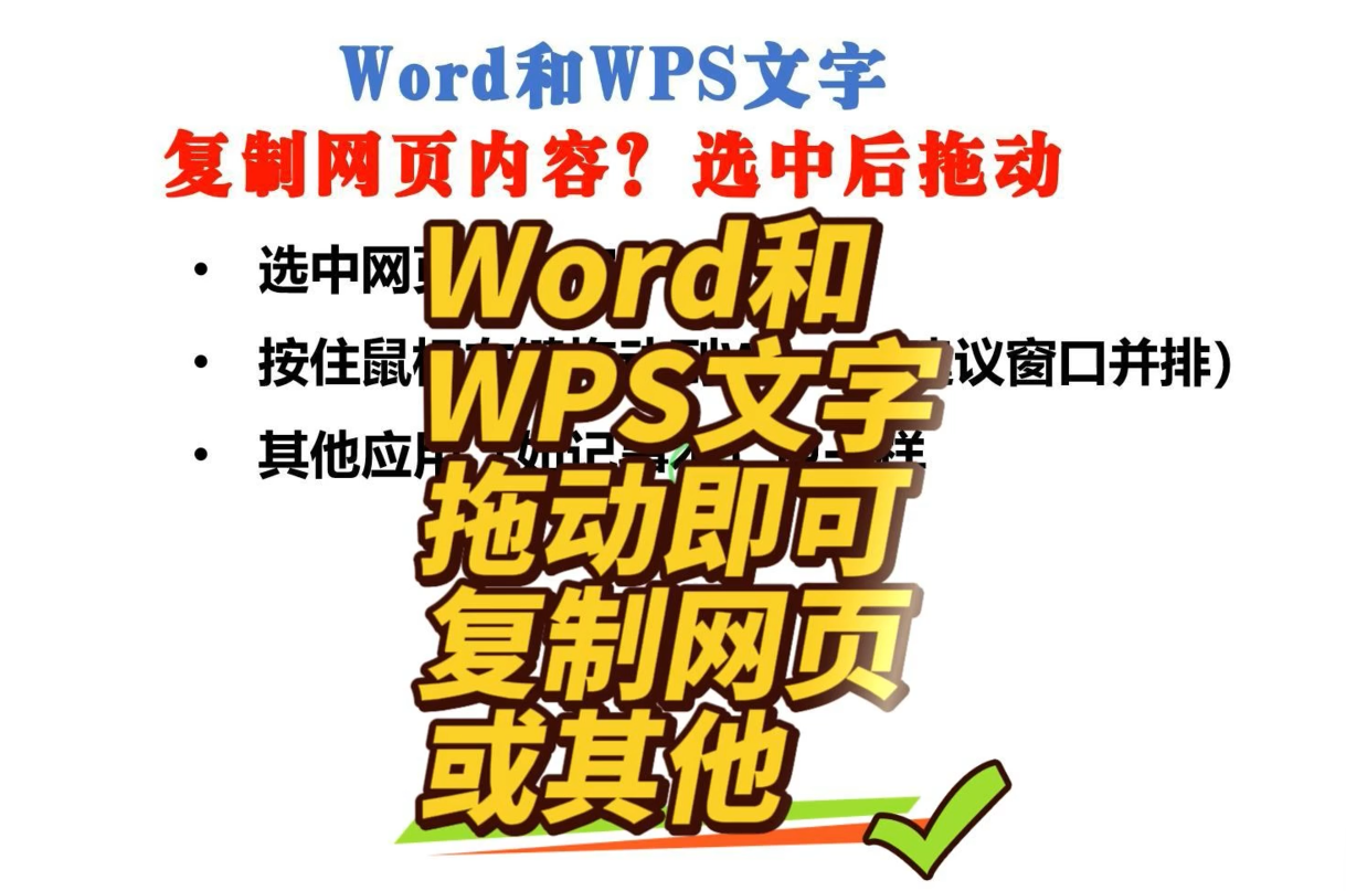 复制网页文字到Word、WPS文字?选中后直接拖放