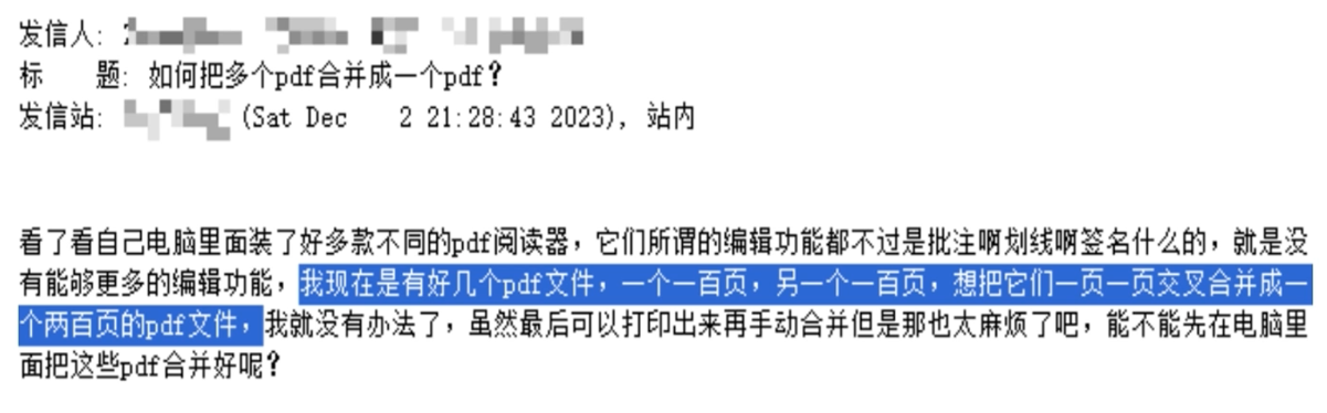 有一个朋友问,如何把两个100页的PDF文件交叉合并为一个PDF文件。