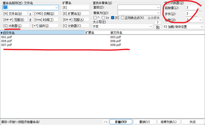 其中,第一步和第三步的拆分合并使用大部分的PDF编辑软件即可实现,包括很多免费的PDF软件,我习惯使用WPS PDF。第二步的重命名也有很多工具和方法,我习惯使用Total Commander。我用的重命名操作如下: