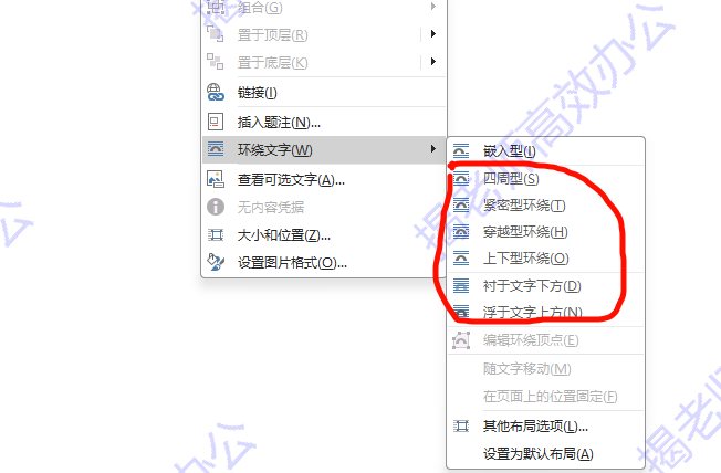 注:Word叫环绕文字,WPS文字叫文字环绕,功能和操作都是一样的。